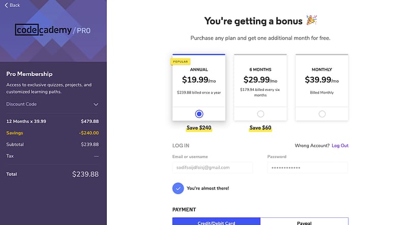 In addition, Codecademy enjoys a strong brand, and lots of our free users sign up after hearing about us from a friend.